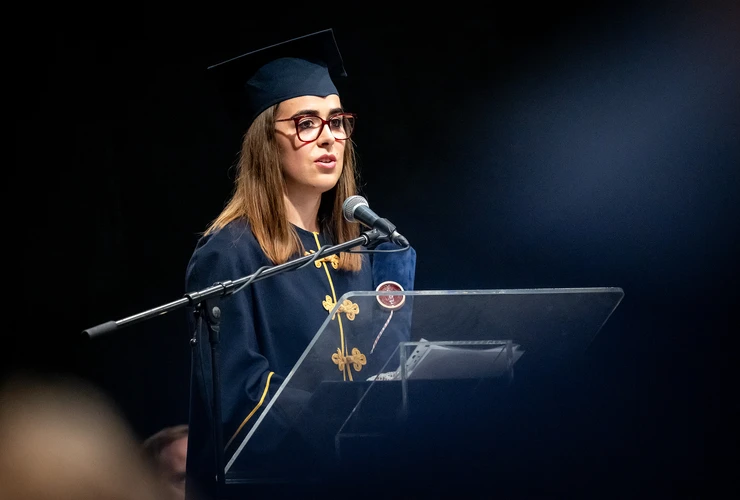Zsófia Réti, a graduating law student, delivered a farewell address on behalf of her fellow students. “We are often referred to as the ‘Covid cohort,’ as the first year and a half of our studies were confined to the virtual space due to the global pandemic. But it was precisely this period that taught us adaptability, perseverance, and how we could become a true community despite the hardships,” she said. She also highlighted that thanks to the faculty’s talent development initiatives and community programmes, they gained not only professional but also deeply personal and lasting experiences.